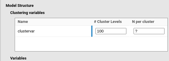 variable. Thus, the # Clusters levels is left empty (or